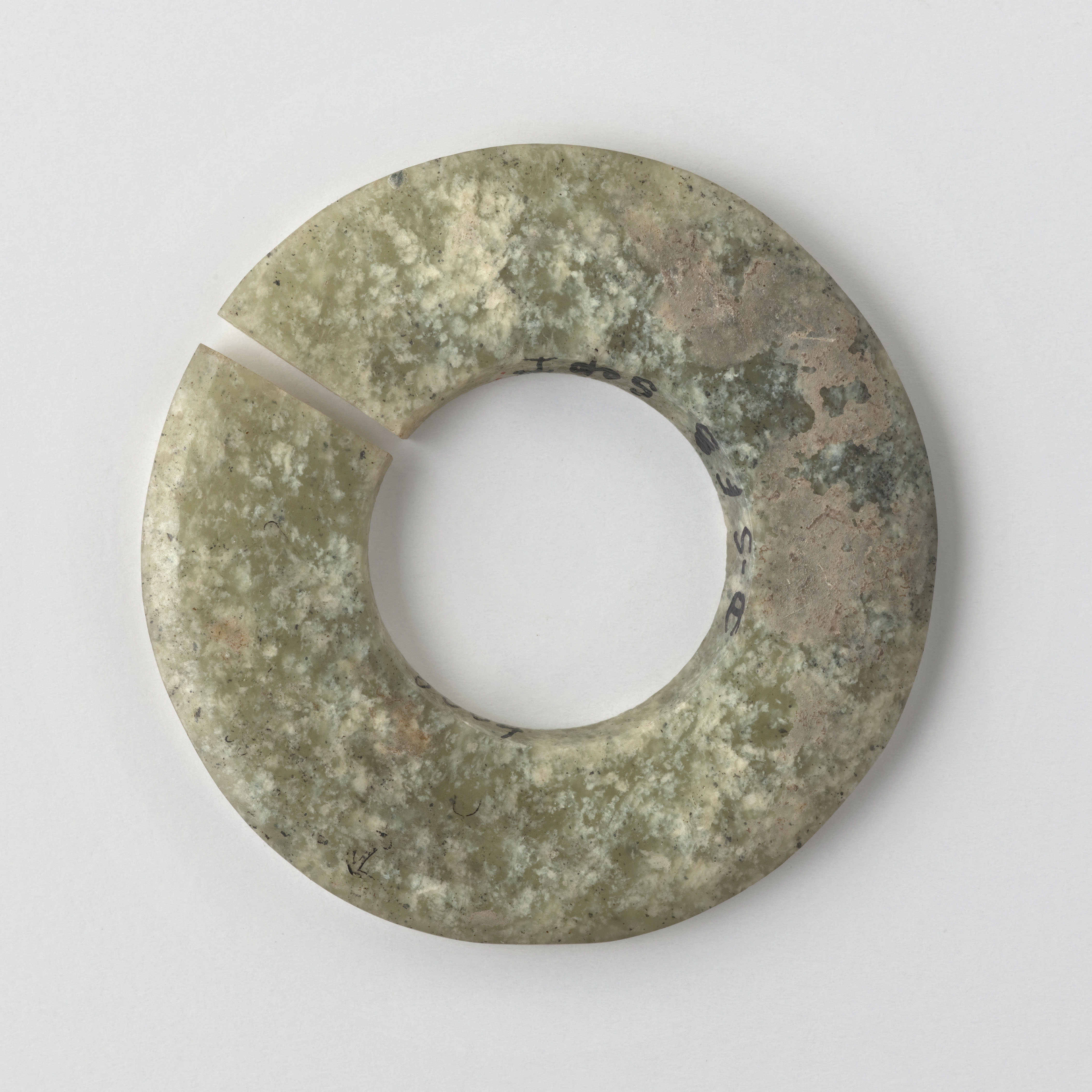 Numerous open rings were found in tombs on Đông Sơn and Lạch Trường sites during Olov Janse’s excavations. Objects such as these have been found from Thailand to South China. In Vietnam, they appear from the third millennium. There are greater numbers of them in the tombs of the Đông Sơn culture, and are still to be found in the early years of the Chinese occupation. Their purpose remains a mystery. Some might have been worn like earrings, the ear lobe slipped into the slit of the ring, as were certain bronze objects dating from the same period also, notably knife handles, pots or lamps decorated with figures in the round. Numerous rings such as these were often placed in the tomb. They may have been tied together or sewn onto a garment. Traces of former repair attest to their value, which was no doubt greater than that of jewellery.