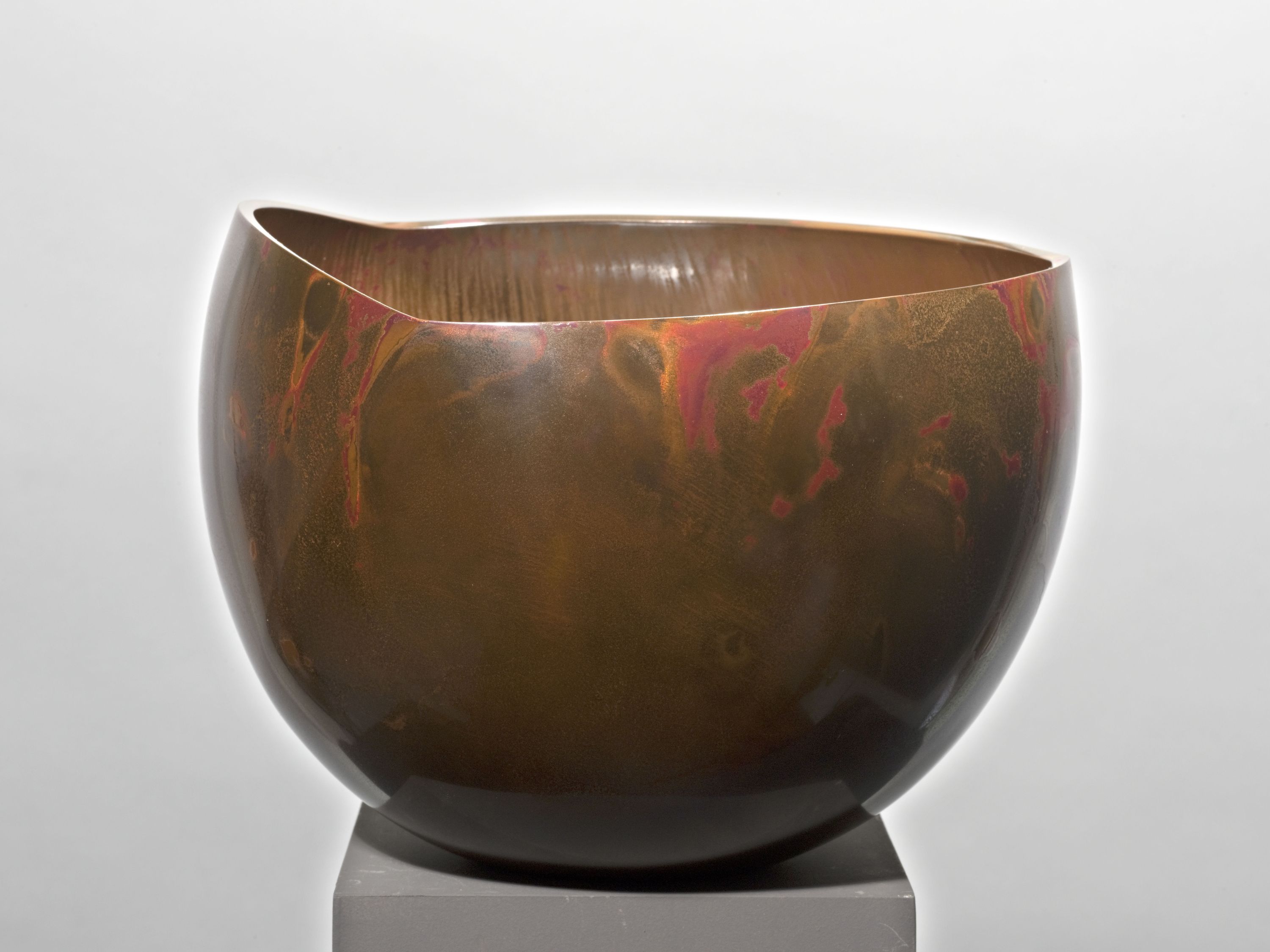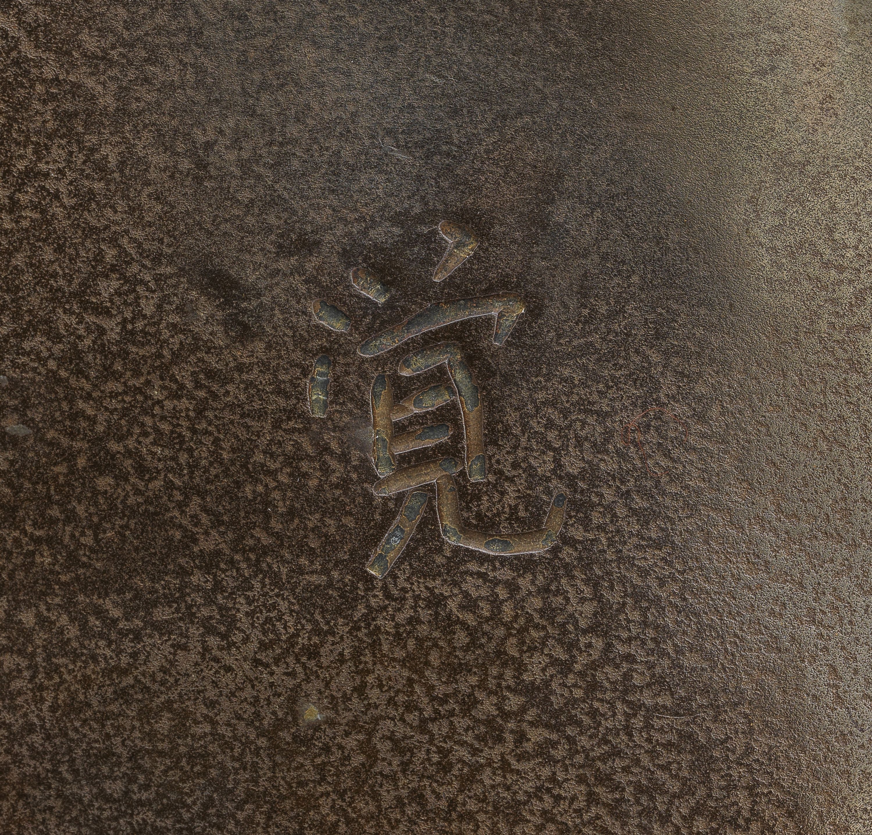 Le mizusashi de Ishigaki Satoru est un alliage de cuivre et d'étain réalisé en 2013, jouant sur l'opposition d'une surface extérieure à patine rouge et brun verdâtre et d'une surface intérieure ornée de fines stries parallèles. Diplômé de l'Université des Beaux-arts de Tôkyô, Ishigaki, dont le travail s'inscrit dans des formes usuelles et traditionnelles comme celle acquise par le musée, représente la nouvelle génération de bronziers. Il a été primé aux Expositions d'art traditionnel du Japon (Nihon dentô kôgei ten) et à la Biennale Tomo des ustensiles de la cérémonie du thé.