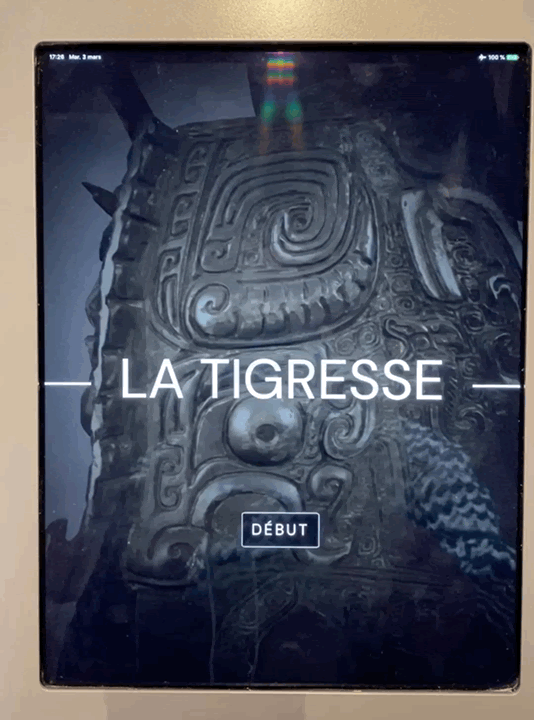 Le visiteur peut manipuler en trois dimensions, sur un écran tactile, le chef-d’oeuvre du musée qu’est la Tigresse, ce vase de bronze en forme de tigre dévorant (ou protégeant ?) un homme. Une quinzaine de points d’intérêts offrent des clés de compréhension à cette oeuvre entièrement gravée et particulièrement riche en iconographies. Pour la première fois dans l’histoire du musée, le visiteur peut voir l’intérieur du vase et manipuler le couvercle de ce chef d’oeuvre.